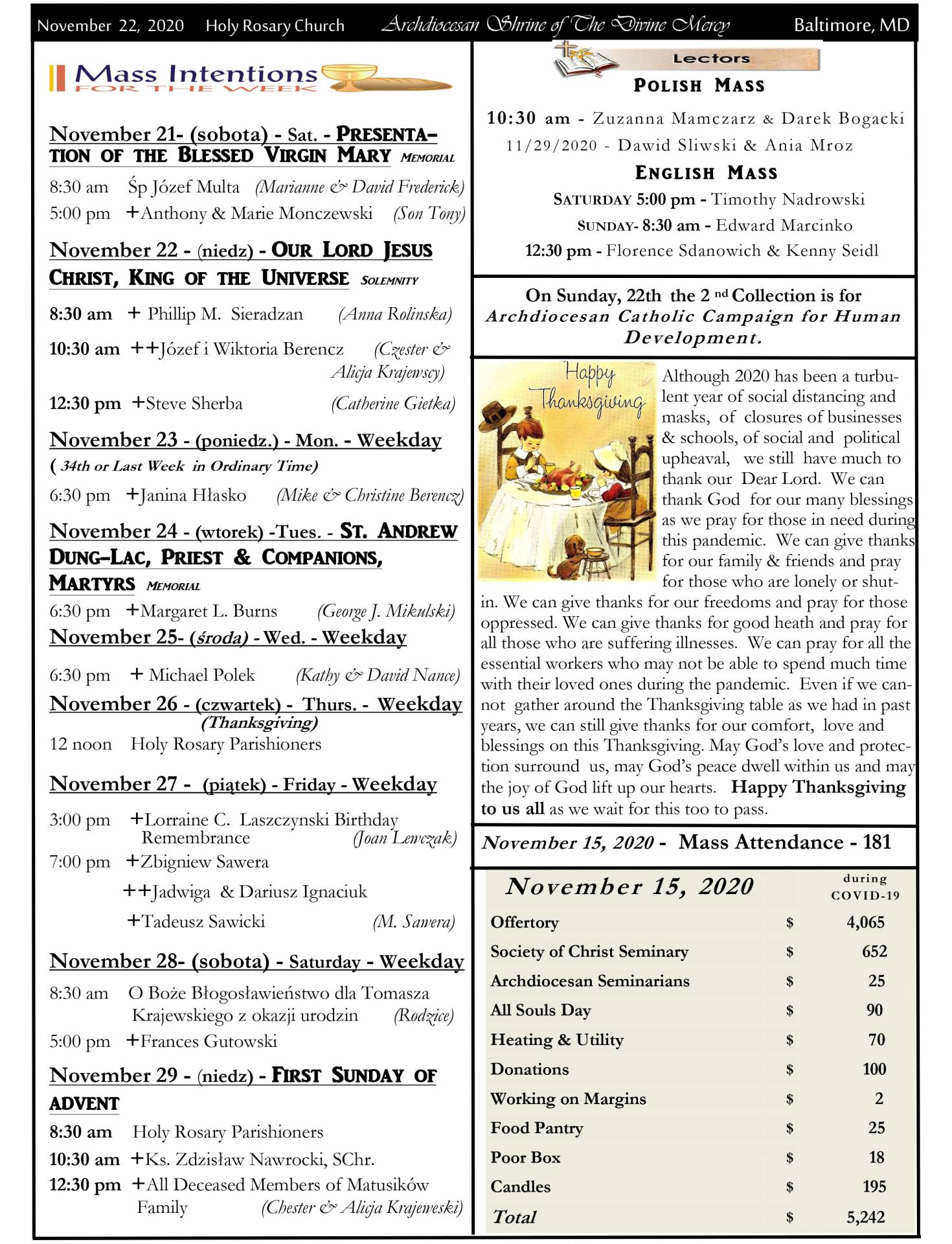 Bulletin, November 22, 2020