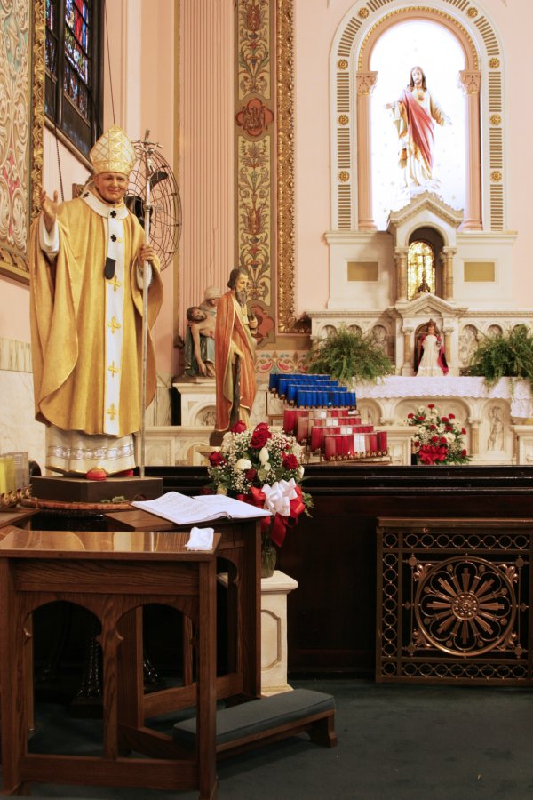 Finally, in the back of the church, there is a small chapel where the former baptistry was located. It was a place of prayer where one could light a candle in remembrance at the altars of the Poor Souls in Purgatory, St. Theresa of the Little Flower, and St. Anthony. Currently this place will become the new Shrine of the Divine Mercy, which will be opened daily for prayer.
