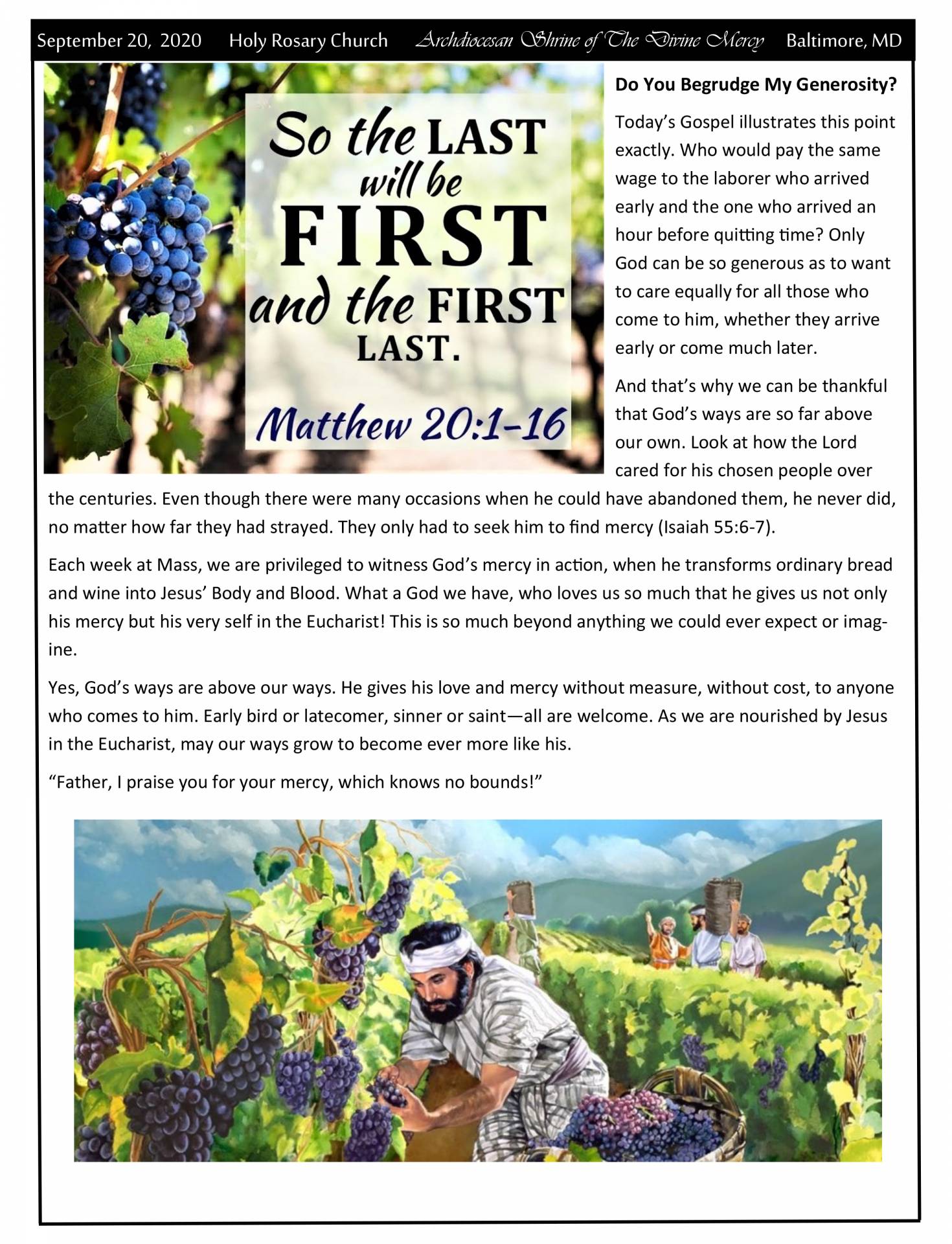 Bulletin, September 20, 2020