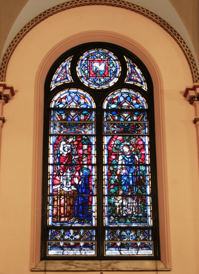 The stained glass windows are of Munich design. The glass was sent from Germany to Reading, Pennsylvania where the windows were wrought. In 2013-2014 our parish restored all of them to their former glory through the generous donations of parishioners and friends whose names can be found on a plaque in the vestibule.