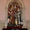 In the sanctuary there are three grand murals. On the left of the main altar there is the Presentation of Mary in the Temple and on the right of the main altar there is the Coronation of the Blessed Virgin Mary as the Queen of Heaven and Earth. Behind the statuary of the Our Lady of Pompeii is the Crucifixion. Around each of the murals there are 5 smaller murals representing the mysteries of the Holy Rosary which befits the name of the parish so well.