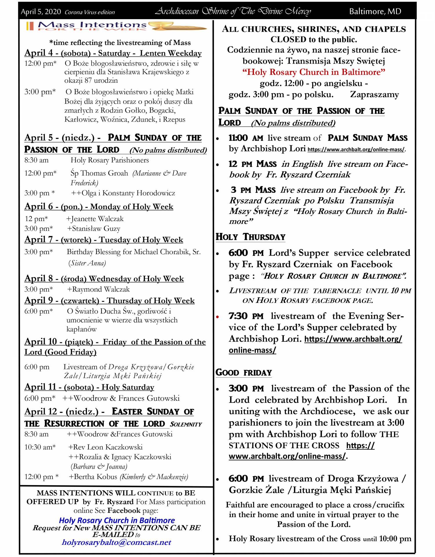 (PL/EN) 11:00 am - link: Holy Rosary Church in Baltimore (Facebook)