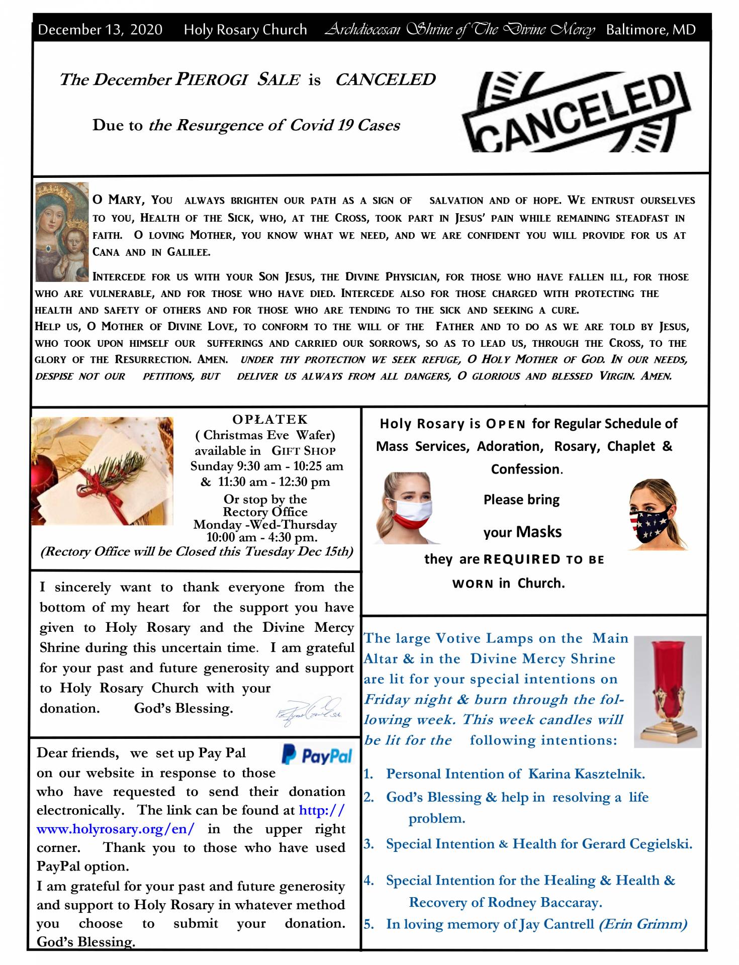 Bulletin, December 13, 2020