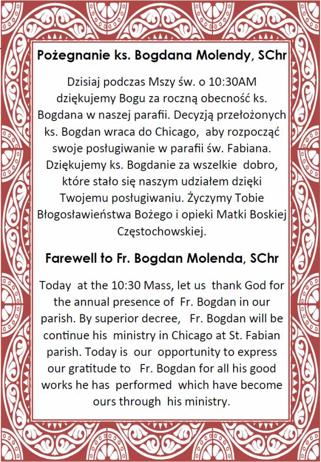 Farewell to Fr. Bogdan Molenda., SChr.