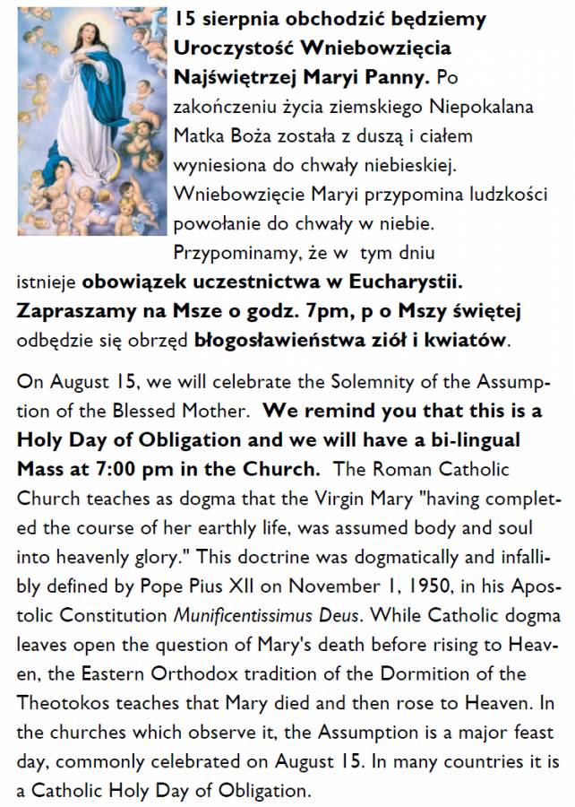 Święto Wniebowzięcia NMP / Assumption of the Blessed Mother (Aug 15, 2013)