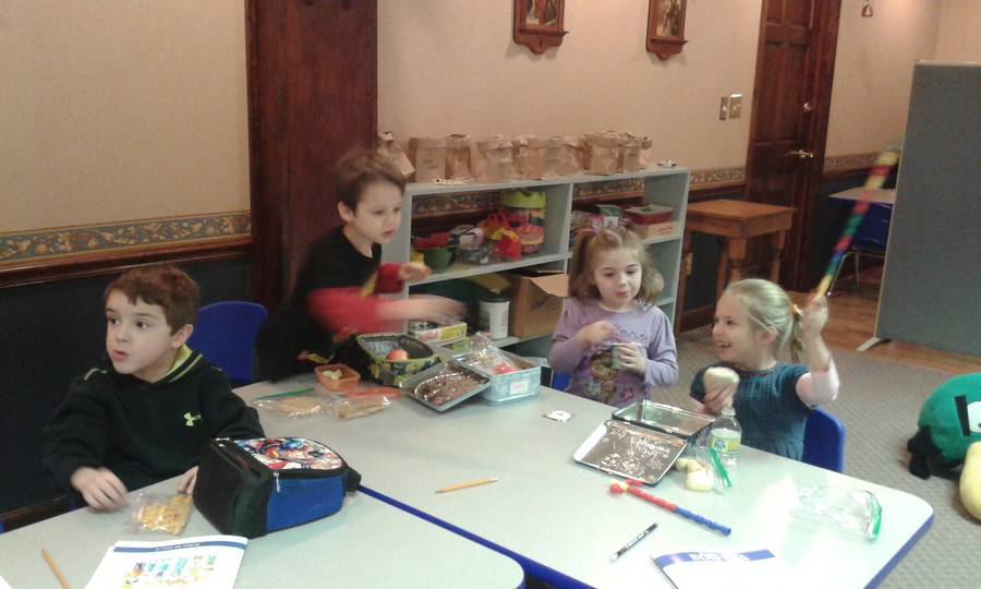 Przewa między zajęciami religii i języka polskiego w zerówce.