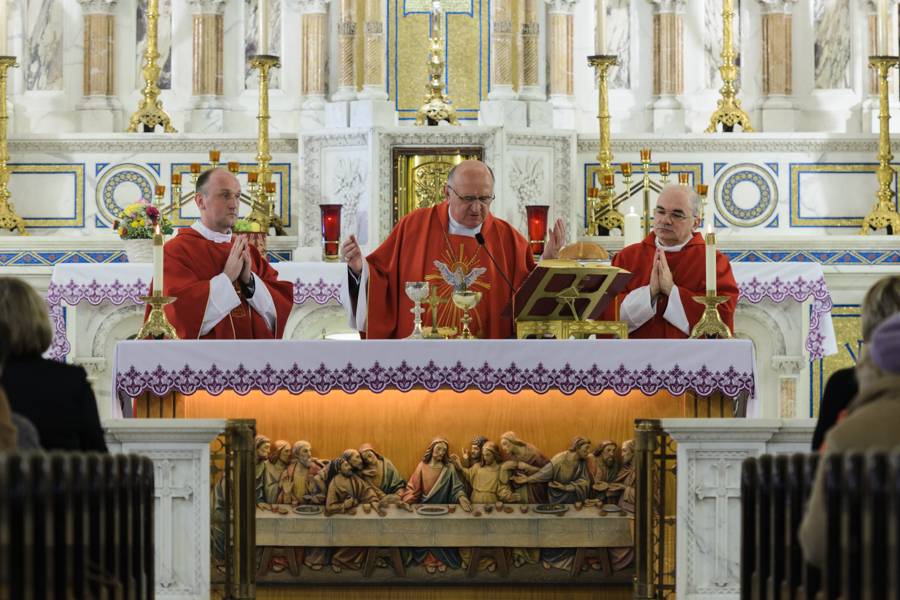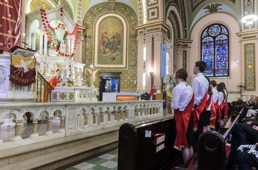 Sakrament Bierzmowania młodzieży przez ks. biskupa Stanisława Stefanka, S.Chr., emerytowanego biskupa łomżyńskiego. Sakrament ten został po raz pierwszy w historii parafii udzielony w języku polskim.